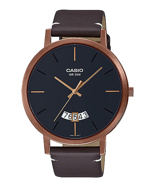 Reloj casual correa de cuero MTP-B100RL-1EV