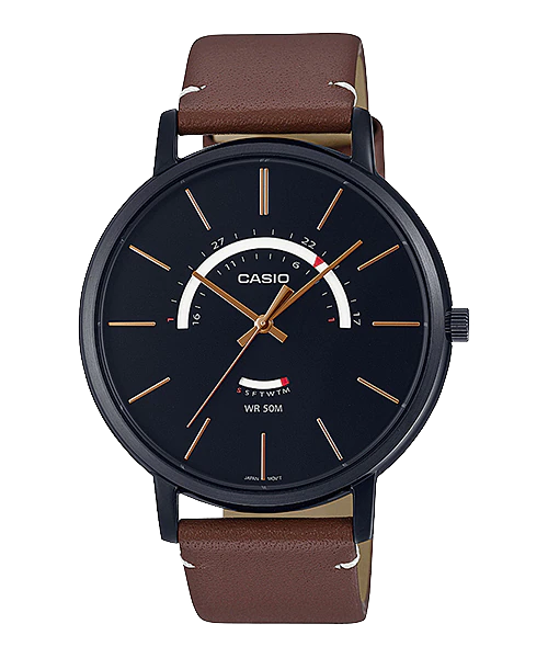 Reloj casual correa de cuero MTP-B105BL-1AV