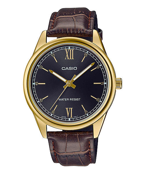 Reloj casual correa de cuero MTP-V005GL-1B2
