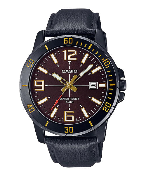 Reloj casual correa de cuero MTP-VD01BL-5BV