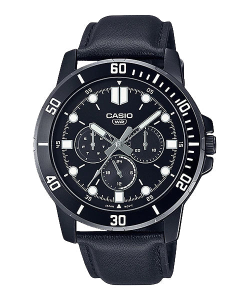 Reloj casual correa de cuero MTP-VD300BL-1E