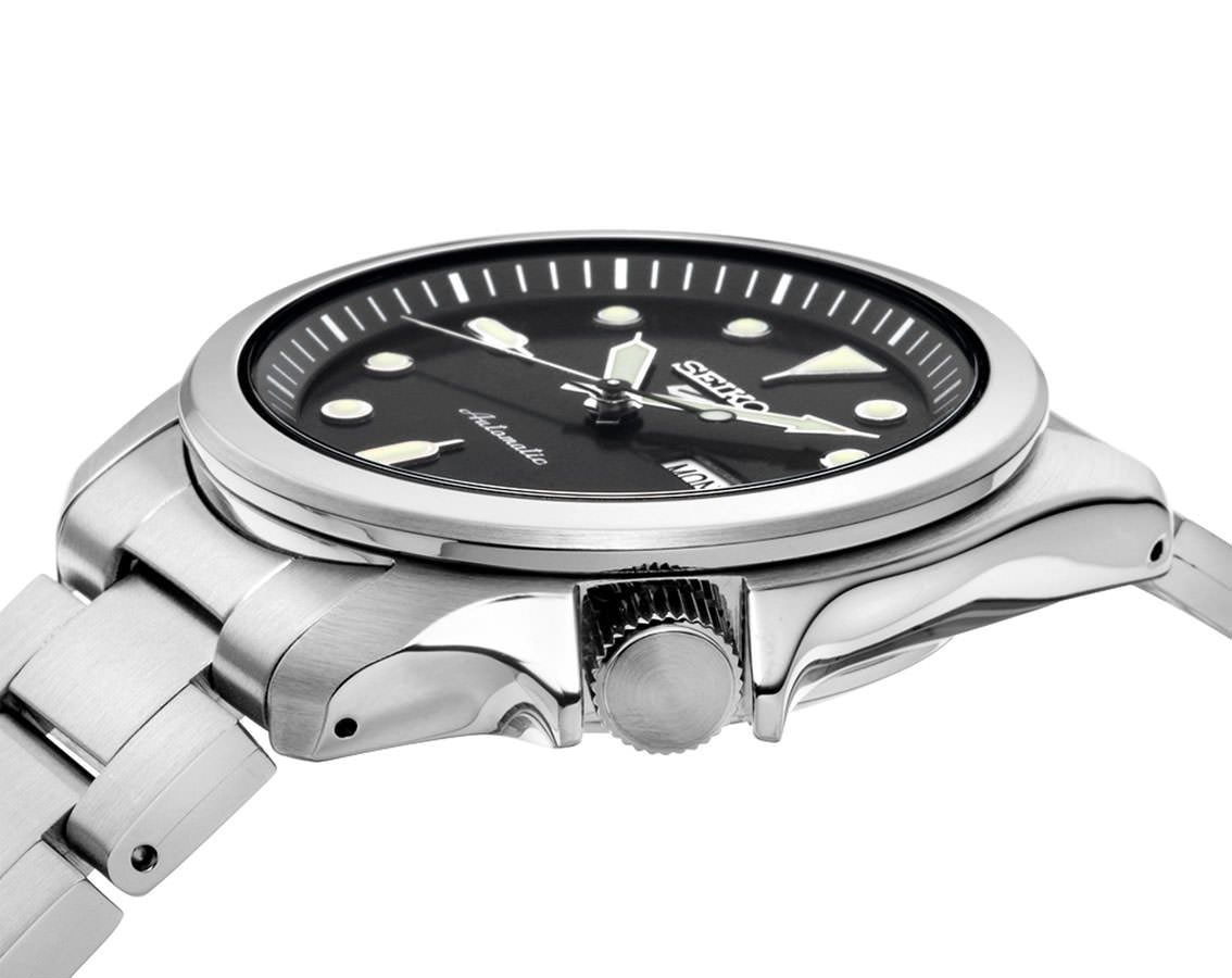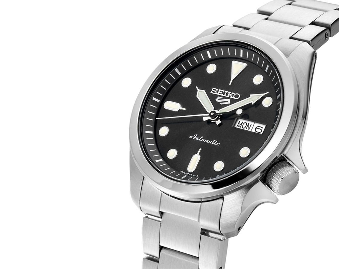 Caja de acero inoxidable Brazalete de acero inoxidable Movimiento automático Calibre: 4R36 24 rubíes Cristal Hardlex Dial negro Visualización analógica Manos y marcadores luminosos Visualización de día y fecha Fondo de caja transparente Hebilla desplegable Resistencia al agua de 100M Diámetro aproximado de la caja: 40 mm Grosor aproximado de la caja: 11 mm