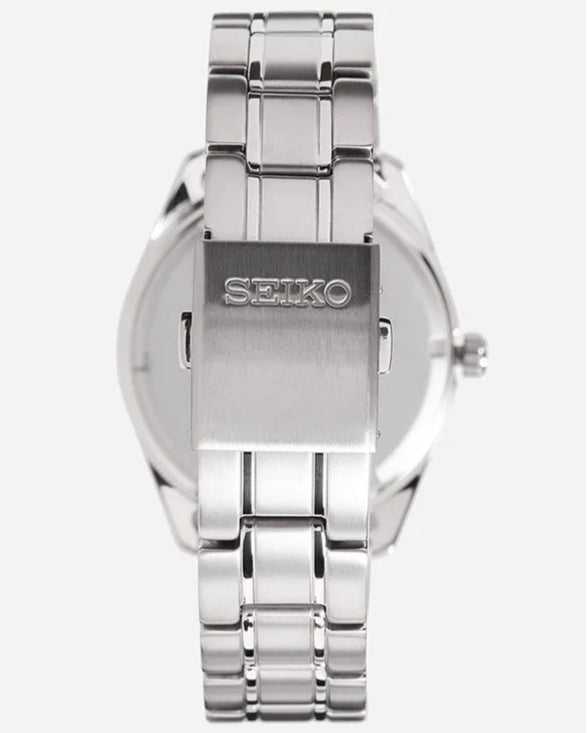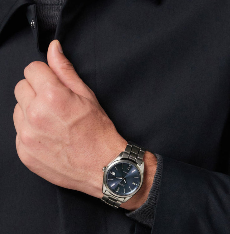 Caja y brazalete de titanio. Bisel fijo de titanio. Esfera azul con manecillas y marcadores de hora luminosos tipo Dauphine en tono plateado. Marcadores de minutos alrededor del borde exterior. Tipo de esfera: Analógica. Manecillas y marcadores luminiscentes. Visualización de fecha a las 3. Movimiento de cuarzo Seiko Calibre 6N52. Cristal de zafiro resistente a arañazos. Corona de presión. Fondo de caja macizo. Forma redonda, tamaño de la caja: 40,2 mm, grosor de la caja: 8,4 mm. Ancho de correa: 18 mm. Cierre desplegable con cierre de seguridad. Resistente al agua hasta 100 metros (330 pies).