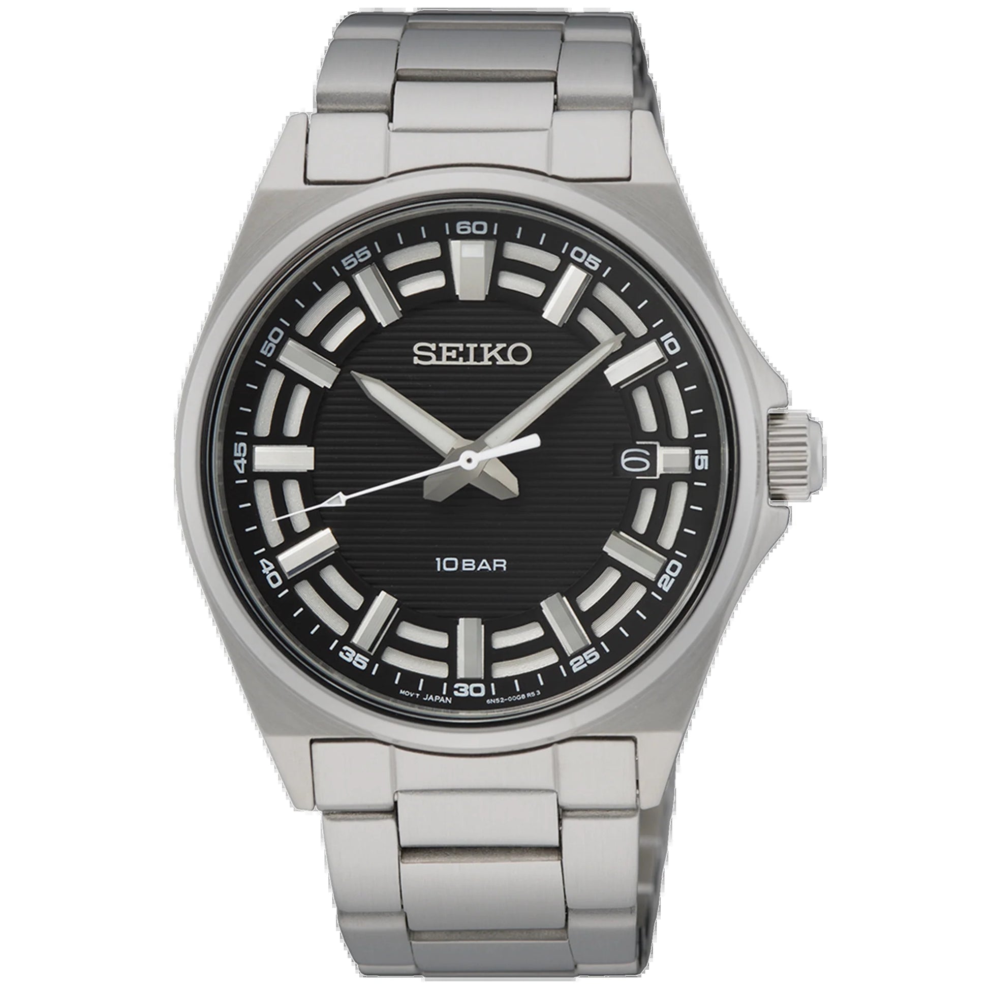 Caja de acero inoxidable, brazalete de acero inoxidable, esfera negra, movimiento de cuarzo, zafiro resistente a los arañazos, resistente al agua hasta 10 ATM - 100 metros - 330 pies
